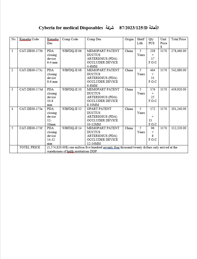 أسعار إحالات مناقصات المستلزمات الطبية