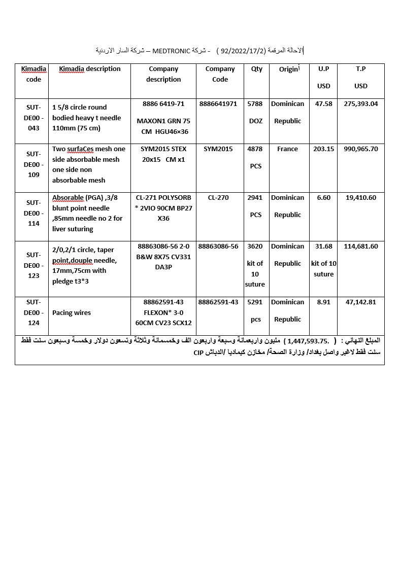 • أسعار مناقصات المستلزمات الطبية (338)